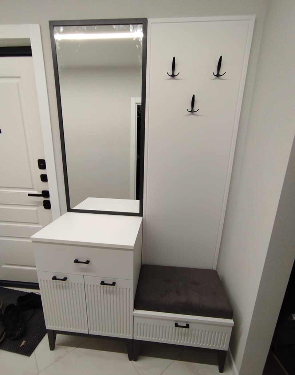 - Фасады: МДФ с фрезеровкой и без (панель ящика) и окутаны плёнкой ПВХ;