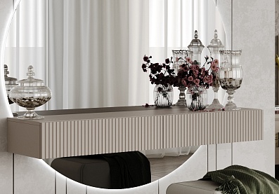 - Для выдвижных ящиков используется система скрытых направляющих со встроенным демпфером, что обеспечивает более высокие потребительские свойства.